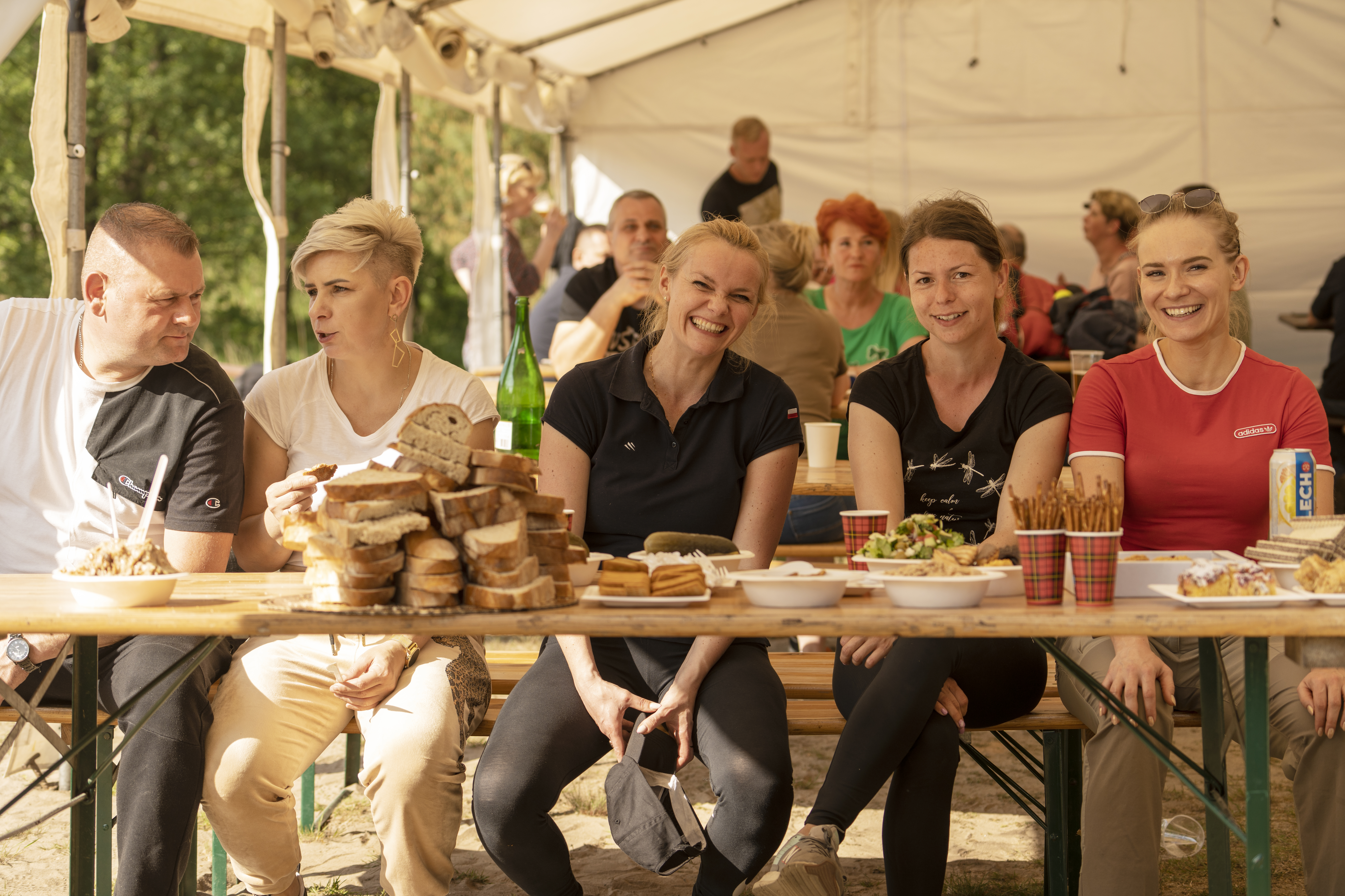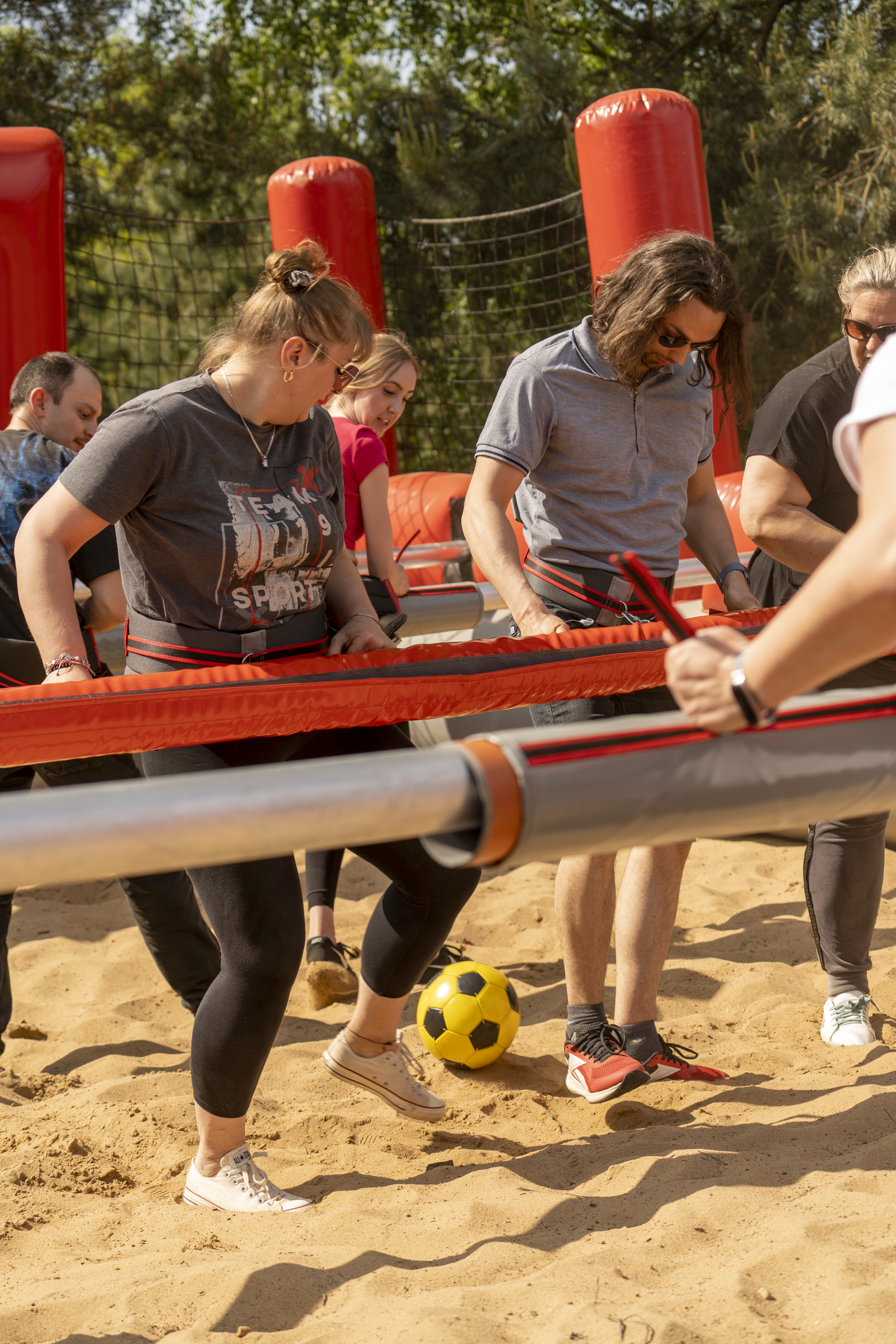 Pogoda nam dopisała, dobre humory również. Uczestnicy pikniku brali udział w wielu konkursach sportowych. Wspólne zmagania świetnie integrowały. Piłkarzyki XXL czy przeciąganie liny wymagały pracy zespołowej. Zdarzało się dostać piachem po oczach. W zmaganiach z liną nie każdy utrzymał się w pionie, ale uśmiech i tak nie znikał nam z twarzy. Ujarzmianie byka, piłowanie drewnianej kłody, niepozorny rzut podkową oraz dart XXL okazały się nie lada wyzwaniem. Liczymy, że kolejne integracje będą równie udane.